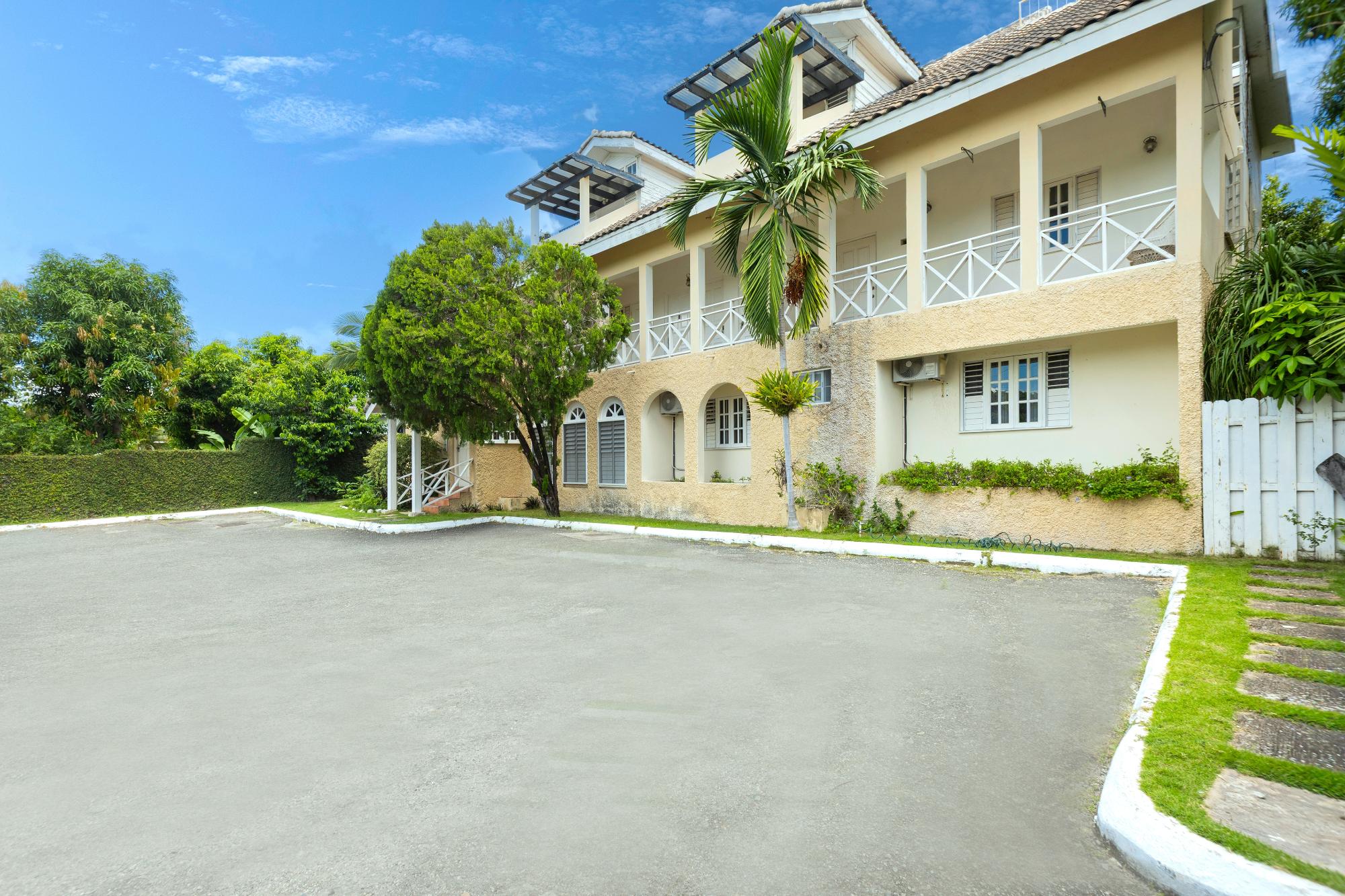 Nestled amidst a lush green garden, this two-story